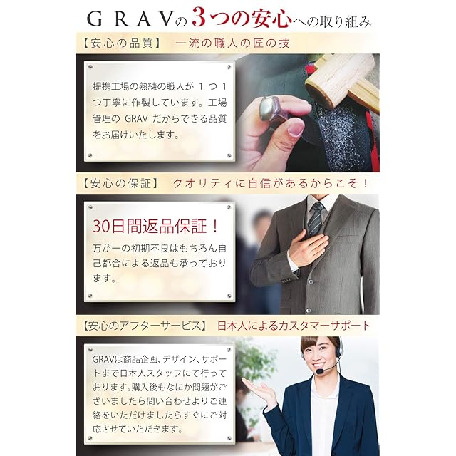 ✅【 GRAVは安心の日本ブランド 】商品到着後の初期不良はもちろんのことイメージ違いなどについても、ご購入から30日以内の場合全額返金あるいは無料交換にて対応させていただきますので 安心してお買い求めください。 また、クリップ(金具)にはメーカー1年がついております。 GRAVではアフターサービスにも力を入れておりますので、商品使用後でありましてもお困りの事がありましたらお気軽にお問い合わせください。