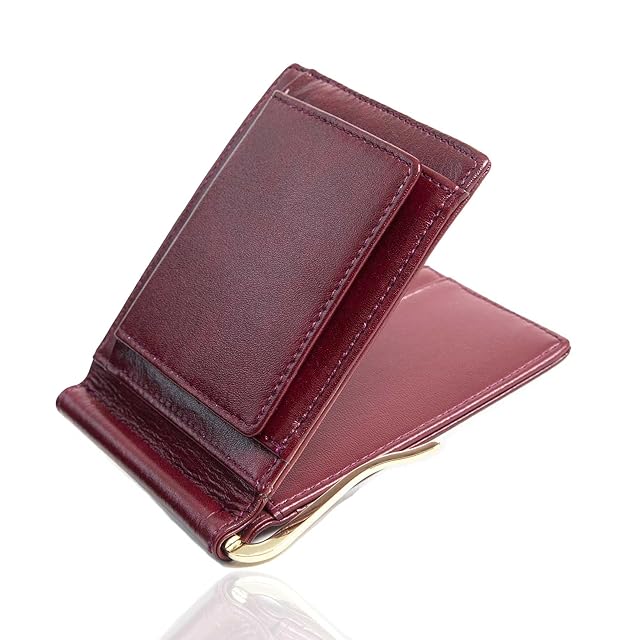 《新品未開封》[GRAV] メンズ 2つ折り マネークリップ 付 本革 薄型 軽量 小銭入れ コンパクト (BOX型小銭入れ外付けタイプ,ワインレッド) 【雑誌 Begin (ビギン) 7月号 掲載品】