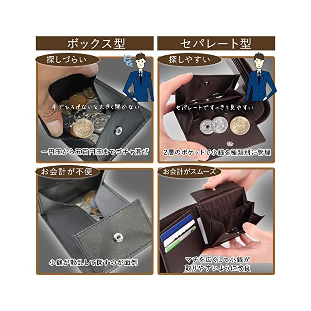 【充実した機能で圧倒的な使いやすさ】 ☑お札入れと小銭入れは2層に分かれているため、お会計時にお金を探しやすく、スムーズにお支払いができます。 ☑15枚のカードを収納できるカードポケットは、クレジット、交通系ICカードにピッタリはまるサイズで、「取りにくさ」を解消しました。 ☑小銭入れのマチを通常より広く設計し、小銭が多く入っても取りやすいように改良しました。