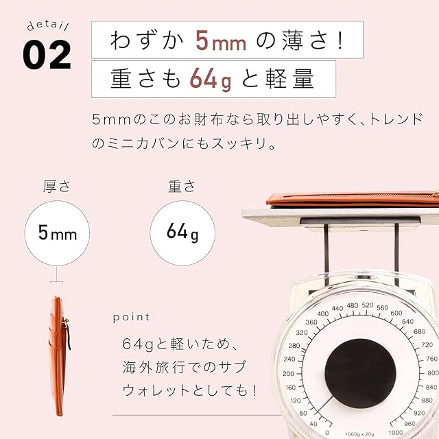 傷・水・汚れに強い本革、「サフィアーノレザー」を使用したスリムな薄型長財布。薄さわずか0.5cmでスリムなバッグの収納に普段使いに活躍する可愛いレディース財布です。カード情報を守るRFIDスキミング防止機能付きで、旅行にも大活躍の財布です。