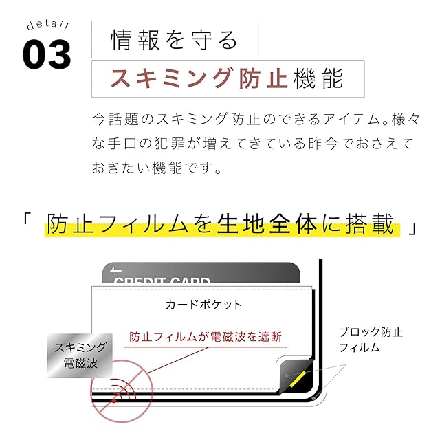 ✅【 お財布を守る!RFIDスキミング防止機能付き 】クレジットカードなどの個人情報の入った磁気情報を盗み取られるスキミング被害に必要なのはRFIDスキミング防止機能。本製品はスキミング防止フィルムをカードケースに搭載し、カードの大切な情報を守ります。