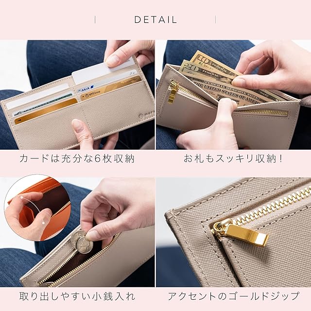 ✅【 牛本革使用!サフィアーノレザーの薄型長財布 】上質な高級感がある高品質牛本革を厳選した薄型長財布。丈夫なだけでなく、手触りも抜群。有名ブランドでも使用される女性らしい洗練されたデザインなので、光沢感のあるこだわり牛本革を楽しめます。また、撥水性・耐久性に優れ、傷や汚れに強いのも魅力。