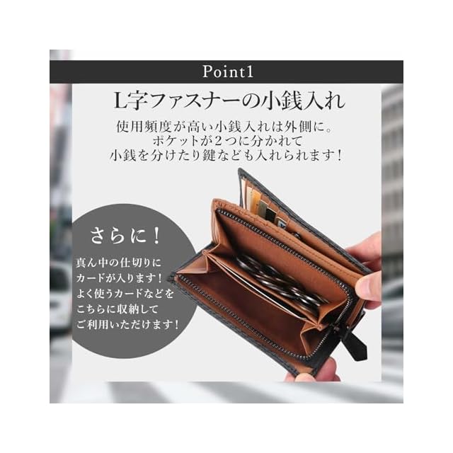 ✅カーボンレザーと牛革から選べる二つ折り財布。外側に付けたL字ファスナーの小銭入れが使いやすい。 お札やカードも大容量入る二つ折り財布です。 また、別売りのウォレットチェーンにも対応しております!