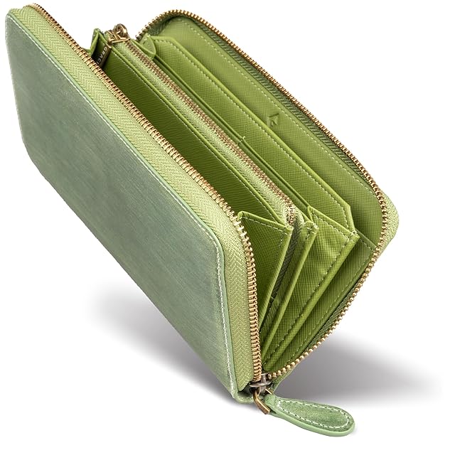 《新品未開封》[GRACIA] ブライドルレザー ラウンドファスナー 財布 メンズ 長財布 本革 大容量 レザー ラウンドファスナー 大容量 カード入れ16枚 (グリーン/グリーン)