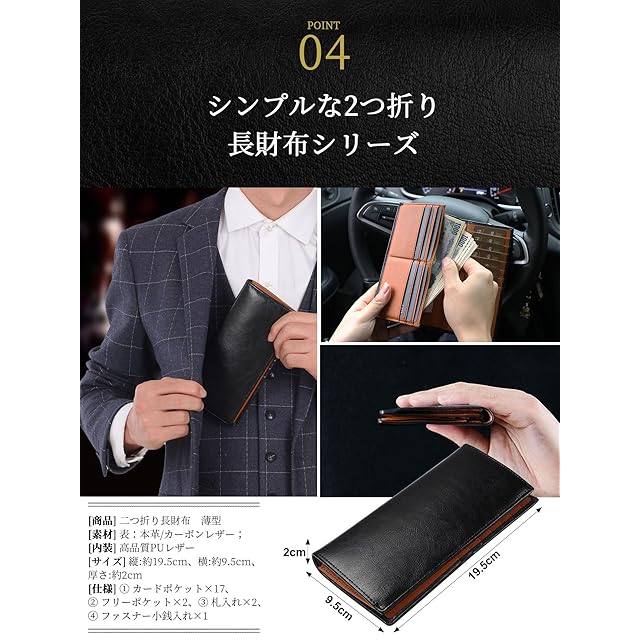 ✅【メンズに最適な2つ折り長財布】落ち着いた光沢を放ち、大人の上品な雰囲気が漂うレザーが使用されています。必需品として長い期間ご愛用いただけます。高級牛革の滑らかな風合いと上質ファスナーの機能性を融合、耐久性抜群、長年愛用可能な品質を実現。職人がひとつひとつ丁寧に製作いたしまいした メンズ 薄型 二つ折り 長財布 が登場。