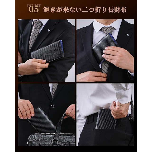 商品名:《新品未開封》[GSG] 財布 メンズ 長財布 2つ折り コンパクト 薄い 革 カーボン 人気ブランド カード19枚 薄型 スキミング 防止 ファスナー小銭入れ 紳士用 男子 おしゃれ 父の日 プレゼント ブラック+ブルー 22045