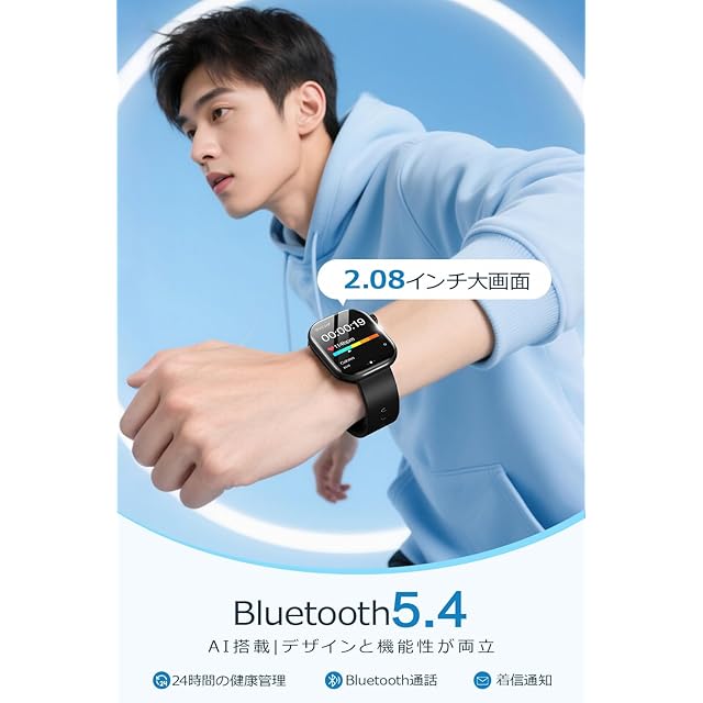 【Bluetooth 5.4搭載、安定通話&即時通知】 最新の Bluetooth 5.4 による高速かつ安定した接続で、スマートウォッチ単体でもハンズフリー通話が可能。高性能マイクとスピーカーが周囲の雑音を抑え、明瞭な音質で会話をサポートします。スマホを取り出さずに通話応答できるので、ドライブ中や家事の最中も快適。さらに LINE・着信・メッセージなどの通知をリアルタイム表示し、プレビューやスタンプ確認まで手元で完結。重要な連絡を見逃さず、仕事もプライベートもスムーズに管理できます。