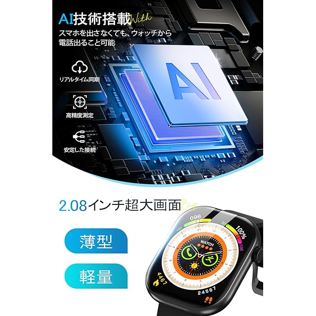 商品名:《新品未開封》スマートウォッチ 【次世代モデル 2.08インチ超大画面】 iPhone対応 アンドロイド対応 最新Bluetooth5.4 通話機能 音楽再生 活動量計 腕時計 110+種類の運動モード スポーツウォッチ IP68防水 アラーム SMS/Twitter/Line通知 省エネー機能 メンズ レディース プレゼントに最適 (ダーク色)