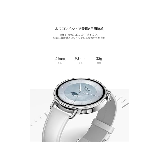 【スリムでエレガントなデザイン】41mm AMOLEDディスプレイを搭載したスリムでコンパクトウォッチ。1.32インチAMOLED大型ディスプレイを採用し、シャープでスムーズなビジュアルを実現。最大1500nitのHBM輝度に対応しています。 プレミアムステンレススチールを用い、洗練されたミニマルな質感に仕上げ、耐久性と時代を超えた魅力を兼ね備えています。