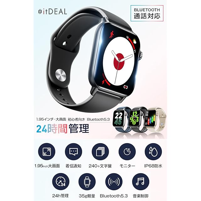 商品名:《新品未開封》スマートウォッチ 【1.95インチ超大画面 & 10日間連続使用】 Android対応&Iphone対応 Bluetooth5.3 通話機能 音楽再生 多種類データ測定 110種類の運動モード 着信通知 IP68防水 ランニングウォッチ SMS/Twitter/Line通知 男女兼用 Smart Watch プレゼント バンド幅20mm ベルト交換可能 (ダーク)