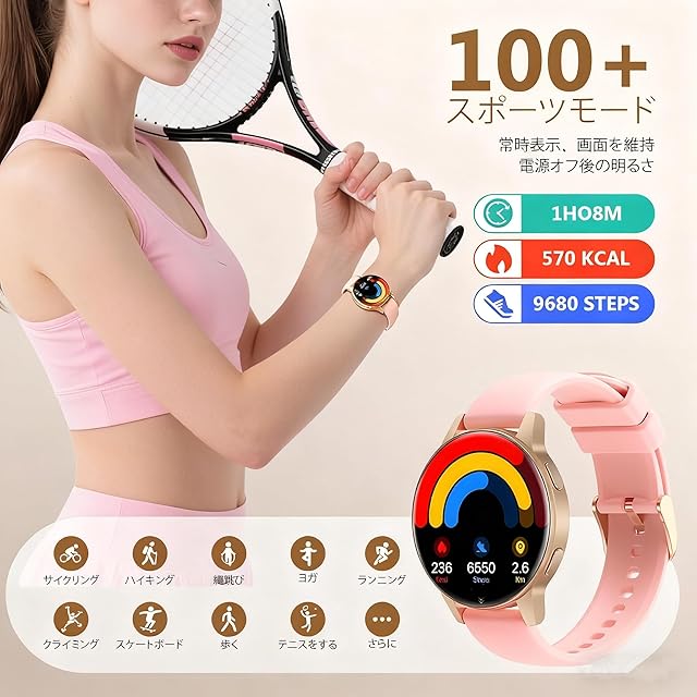 商品名:《新品未開封》スマート ウォッチ【2025年 新モデル・超薄型・超軽量】 iPhone対応 アンドロイド対応 丸型 1.27インチ 通話機能 通話通知 活動量計 腕時計 IP68防水 100種類運動モード 文字盤切替 音楽再生 スポーツウォッチ 天気予報 カメラ操作 心拍数測定 スポーツ'スマートウォッチ レゼントに最適 (ピンク)