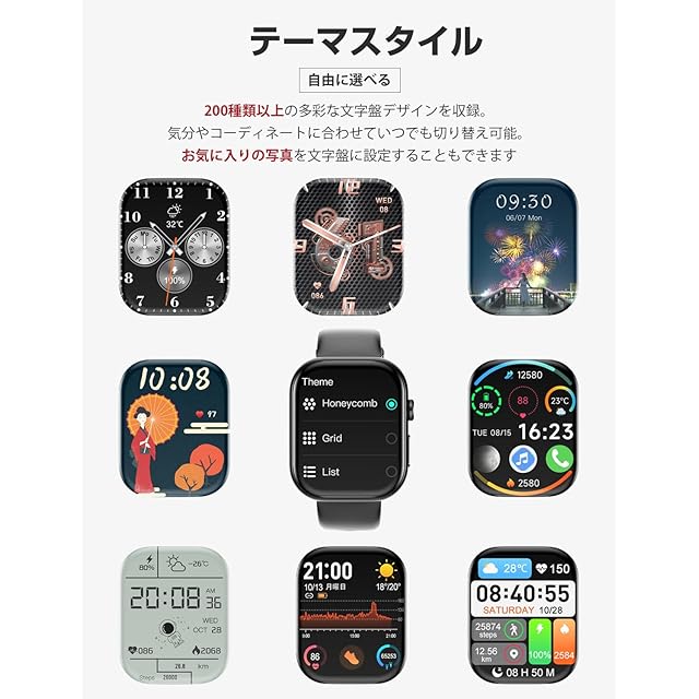 【1.9インチHD大画面・スムーズな操作感】本製品は、240×284ピクセルの高解像度を備えた1.9インチの大画面を搭載し、映像は鮮明で美しく、鮮やかな色彩と広い視野を実現しています。✨指先にしっとりと馴染むスムーズなタッチで、直感的に画面を切り替えられ、スマホのような軽快な操作性を実感。さらに、独自開発のOSを採用することで、画面遷移が速く、誰でも簡単に扱えるインターフェースを搭載しています。着信、LINE、SMS、Twitterなど各種メッセージやアプリ通知をすべて手元で素早く確認でき、無駄なくスマートに毎日を管理可能。さらに、スマートウォッチ アンドロイド対応でiPhoneも使え、ペアリングも簡単。腕を上げるだけで画面が自動点灯する「手首検知」機能を備え、必要な情報がすぐ目に入る設計。専用アプリでは100種類以上の文字盤がワンタッチで変更でき、気分やシーンに合わせて自在にカスタマイズできます。