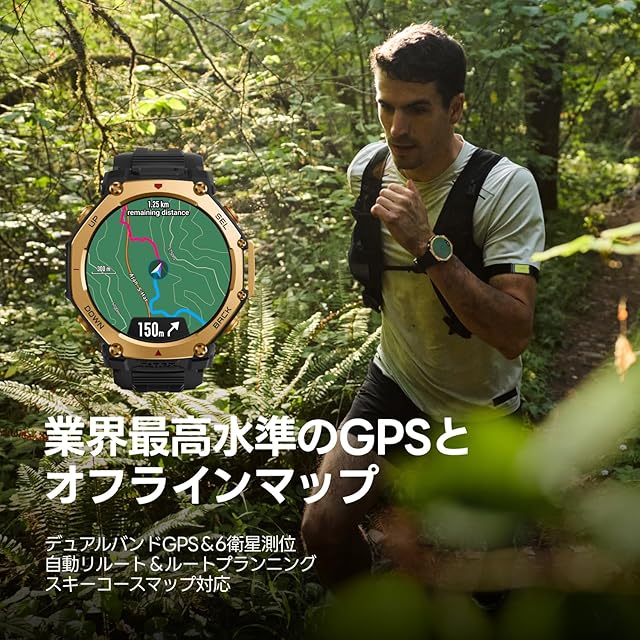 商品名:《新品未開封》Amazfit T-Rex 3 Pro 48mm スマートウォッチ 登山 トレイルランニング ヤマレコ ヤマップ G5チタン合金 サファイアガラス スピーカー内蔵 フラッシュライト iPhone Android対応 GPS 6衛星 ミリタリー 3種類オフラインマップ ナビゲーション ルートインポート 10ATM防水 AIによる音声操作 (タクティカルブラック)