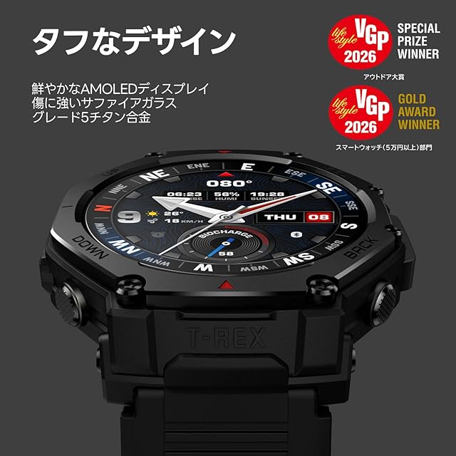 【あらゆる冒険に対応】 180種類以上のスポーツモード、HYROXトレーニング、10ATMの防水性能、45mダイビング認証に対応。Amazfit T-Rex 3 Proは、深い海から険しい山頂まで、あらゆる場面で真価を発揮します。