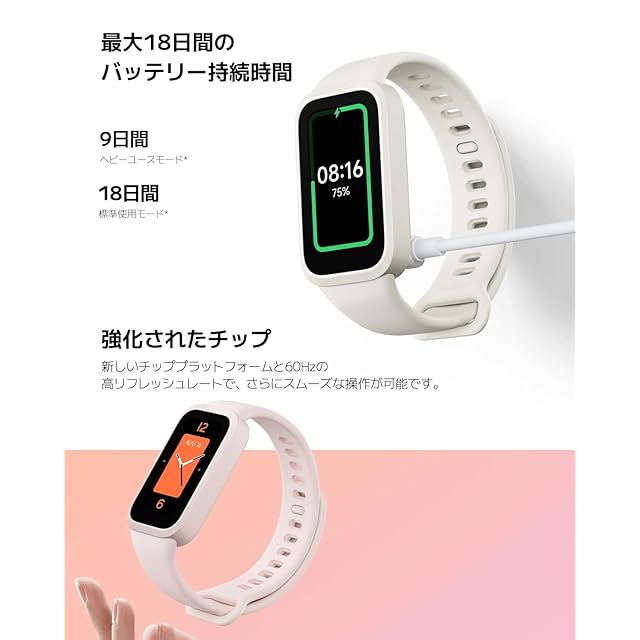 《新品未開封》シャオミ(Xiaomi) スマートウォッチ Xiaomi Band 9 Active 18日間連続使用 1.47インチTFTディスプレイ 24時間健康管理 チップ強化 軽量デザイン 交換可能なフレーム iPhone & Android対応 ピンク