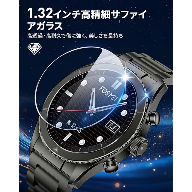 商品名:《新品未開封》FOSMET R1 スマートウォッチ【2025新モデル· Bluetooth通話対応】1.32インチAMOLED常時表示 サファイアガラス GPS連携 最大14天連続使用 4PDセンサー 自動運動検知 IP68防水 睡眠管理 メッセージ通知 100種スポーツモード 文字盤カスタマイズ可能 iPhone/Android対応 TELEC認証取得済 ブラック