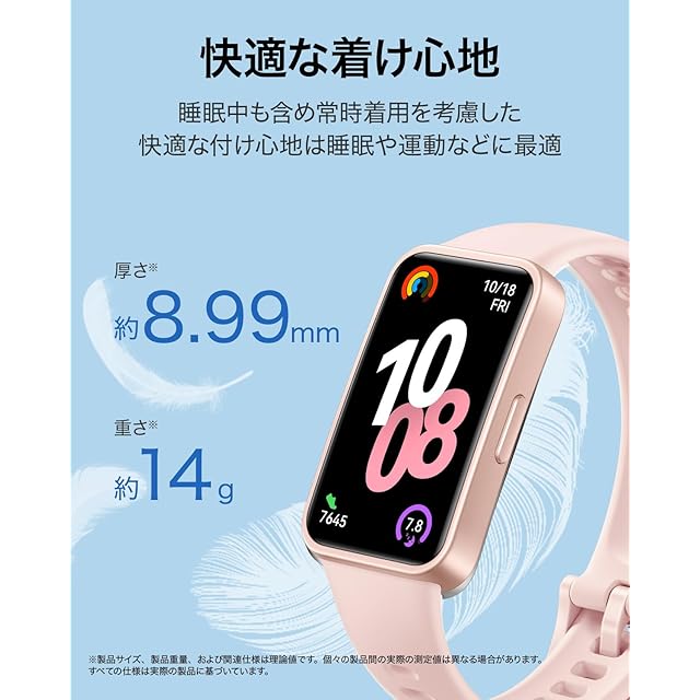 【使いやすく快適な着け心地のデザイン】 使いやすさ、通気性、フィット感などを考慮して設計された厚さ約8.99mm、重さわずか約15gのデザインは、日常だけでなく睡眠中や運動中などあらゆる常時着用するシーンで軽く快適な着け心地が実感できます。