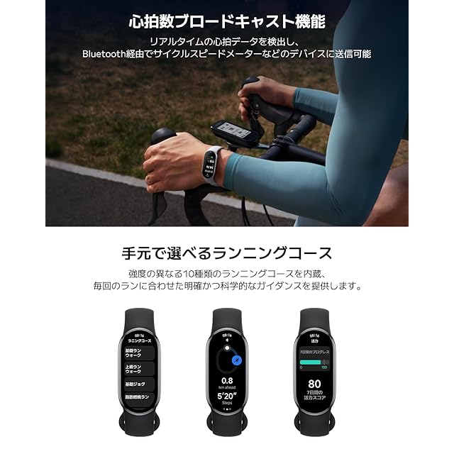 【24時間のパーソナルフィットネスコーチ】高精度な9軸モーションセンサーと進化したプロフェッショナルアルゴリズムを搭載したXiaomi Smart Band 10は、運動や健康データをこれまで以上に正確に計測します。サイクリング中でもスイミング中でも、リアルタイムで心拍数を測定可能。信頼性の高いデータによって、あなたのウェルネス習慣をしっかりとサポートします。