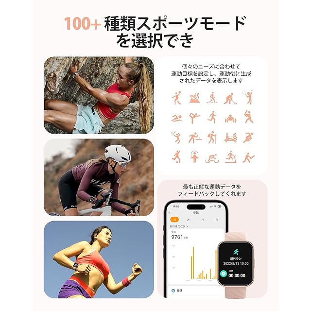 《新品未開封》[Parsonver] 日本正規品 スマートウォッチ 5ATM防水 水泳可能 1.8インチ大画面 iPhone/アンドロイド対応 睡眠モニリング 心拍数 100+種類運動モード 活動量計 腕時計 smart watch 歩数計 消費カロリー計 着信&メッセージ通知 DIY文字盤 連続駆動10日間 日本語説明書付き 2025新登場 (桜)