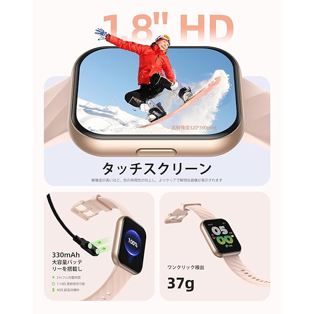商品名:《新品未開封》[Parsonver] 日本正規品 スマートウォッチ 5ATM防水 水泳可能 1.8インチ大画面 iPhone/アンドロイド対応 睡眠モニリング 心拍数 100+種類運動モード 活動量計 腕時計 smart watch 歩数計 消費カロリー計 着信&メッセージ通知 DIY文字盤 連続駆動10日間 日本語説明書付き 2025新登場 (桜)