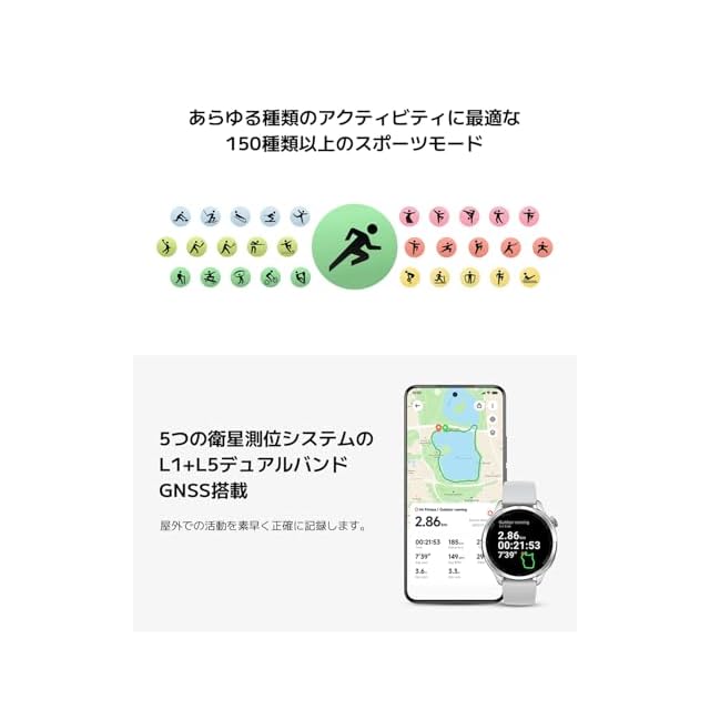✅ワンタップで健康管理や150種類以上のスポーツモードにアクセス:新開発アルゴリズムで心拍モニタリング精度が98.2%向上。心拍数、血中酸素、ストレス値などの総合的なヘルスケア機能を強化しました。GPS搭載でスマホなしでもワークアウトの経路・距離を測定可能。150以上のスポーツモードとランニングガイドで多様な運動をサポート。