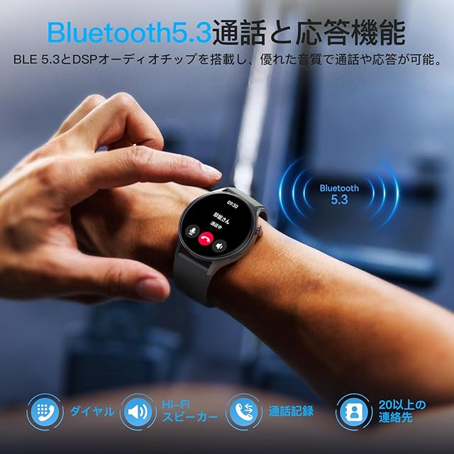 【通話機能付き&DSPオーディオチップ搭載】 ★スマートウォッチをタップするだけで通話可能であり、キーパッド付で電話をかけることができます、電話帳の作成、着信履歴の記録、更に、この便利性にDSPオーディオチップを搭載、安定性に高性能を加えます‥★「DSPオーディオチップって?」--DSPを搭載したら、複雑なアナログ回路だと、回路内でどうしても発生しがちなノイズや音質劣化とは全く無縁で、低ノイズで劣化の少ないエフェクト音が得られる。そこで、より安定、より速い、より高音質な通話体験を提供いたします。