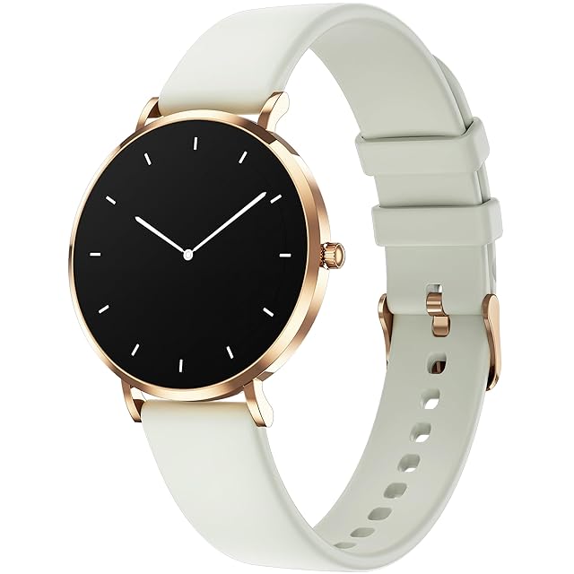 《新品未開封》MONOMAM Rotondo スマートウォッチ レディース iPhone対応 アンドロイド対応 メンズ 丸型 ベルト幅18mm 常時表示 AMOLEDディスプレイ 活動量計 Line 着信通知 (Dusty Beige)