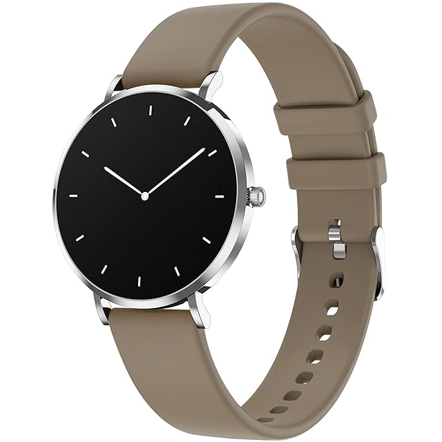 《新品未開封》MONOMAM Rotondo スマートウォッチ レディース iPhone対応 アンドロイド対応 メンズ 丸型 ベルト幅18mm 常時表示 AMOLEDディスプレイ 活動量計 Line 着信通知 (Milk Chocolate)