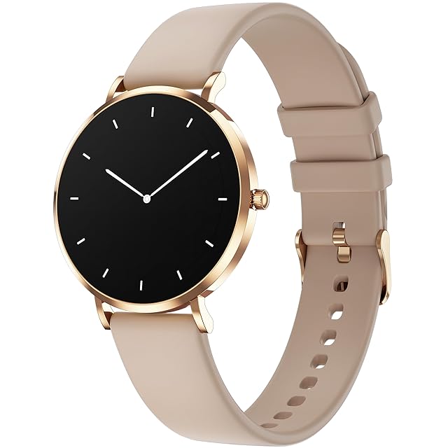 商品名:《新品未開封》MONOMAM Rotondo スマートウォッチ レディース iPhone対応 アンドロイド対応 メンズ 丸型 ベルト幅18mm 常時表示 AMOLEDディスプレイ 活動量計 Line 着信通知 (Rose Beige)