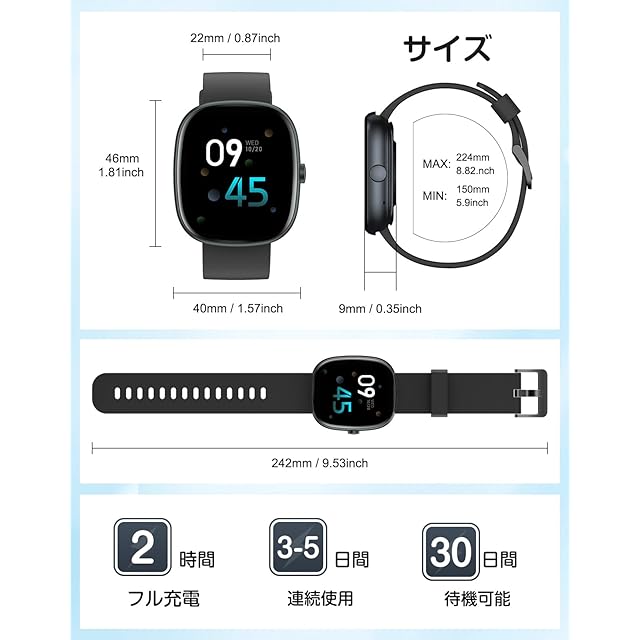 【1.83インチ&文字盤変更】1.83インチのフルタッチスクリーンを搭載したHUAKUA D3は、上下左右にスワイプでき、スムーズな操作感を実現します。解像度は240×284で、鮮明な画質が視覚的な楽しみを提供し、大画面で通知や機能が一目で確認できます。画面の明るさは自由に調整可能で、直射日光下でも視認性を保ちます。さらに、D3は5つの内蔵ダイヤルに加えて、専用アプリで200種類以上のダイヤルを選べます。お気に入りの家族やペット、風景などの写真をウォッチフェイスに設定し、毎日気分に合わせてダイヤルを変更することができます。