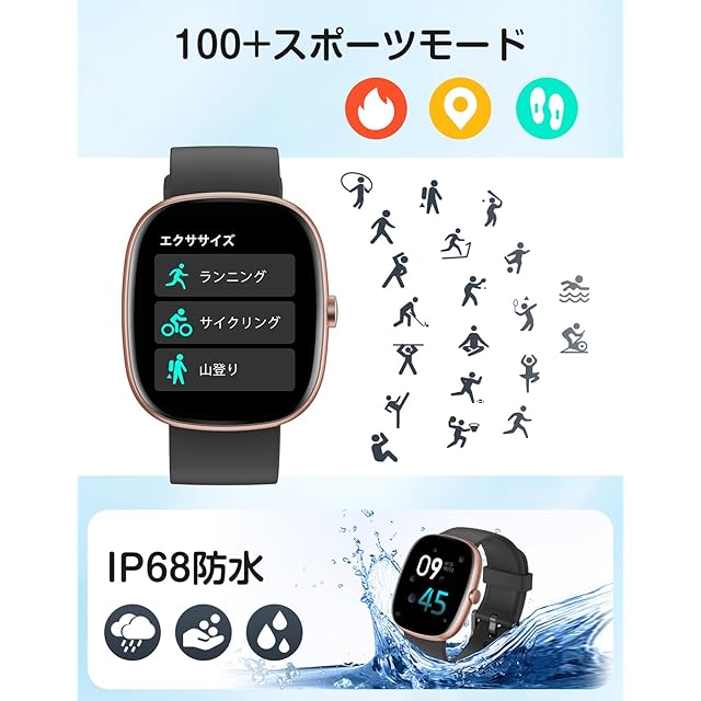 商品名:《新品未開封》HUAKUA スマートウォッチ iPhone アンドロイド対応 Bluetooth通話機能 Smart Watch 1.83インチ大画面 腕時計 100+運動モード 歩数計 着信通知 睡眠管理 天気予報 消費カロリー IP68防水 長持ちバッテリー 長座注意 スマート探す TELEC認証済み