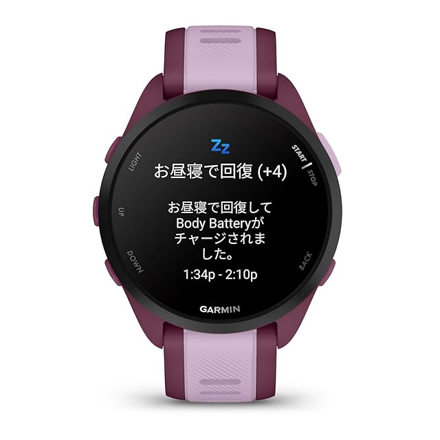 【決済機能】手ぶらで走りに行っても、Suica機能搭載でスマートに支払い。【健康管理機能】睡眠スコア測定やストレスモニタリング、BodyBattery機能で一日の体力を可視化します。