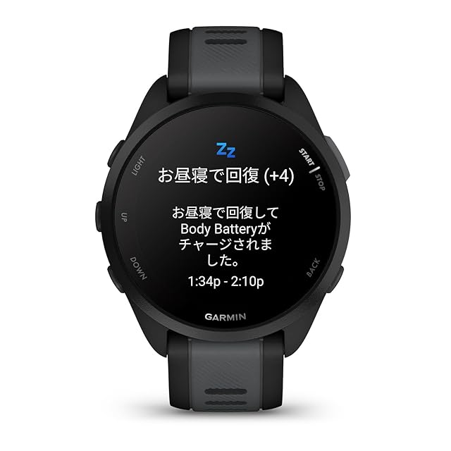 【決済機能】手ぶらで走りに行っても、Suica機能搭載でスマートに支払い。【健康管理機能】睡眠スコア測定やストレスモニタリング、BodyBattery機能で一日の体力を可視化します。