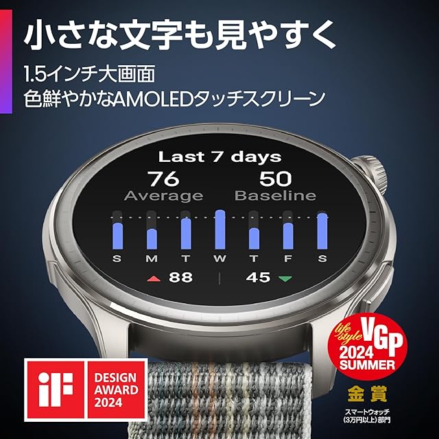 【ファッション性と機能性を両立】 プレミアムかつ耐久性に優れた1.5インチのサファイアガラスとアルミニウムボディを採用し、スタイリッシュなデザインを実現。デュアルスピーカーで音声ガイドも明瞭に。