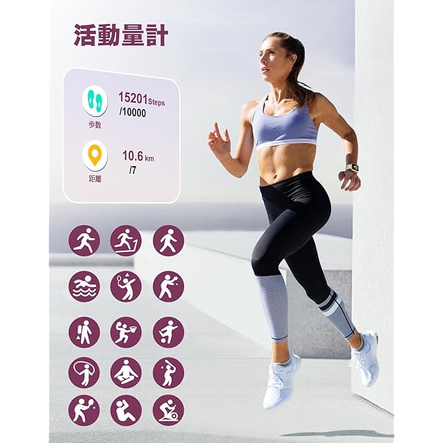 【活動量計&日常生活管理&IP68級の防水】日常生活や様々なスポーツ、フィットネス活動において、スマートウォッチの革新モデルは歩数、距離など様々なスポーツデータを記録することができます。ランニング、ウォーキング、サッカー、水泳、ヨガなど、アプリには100種類以上の運動モードがあり、多様な運動ニーズに応え、運動管理をサポートします!スマートウォッチは手首に装着することができ、軽量設計と通気性の良いベルドにより、一日中装着していても負担なく身体の状態を把握することができます。、女性のニーズに合わせて生理周期の機能も搭載しています。日常生活に大きな利便性をもたらし、幸福感をもたらす!IP68の防水性を備えているので、日常生活の手洗いや洗顔の際はもちろん、夏に汗だくのトレーニングにも気にせずに使用OK です。※ご注意:お風呂、サウナ、温泉水や温泉の湯気及び高い水圧は故障の原因となります。