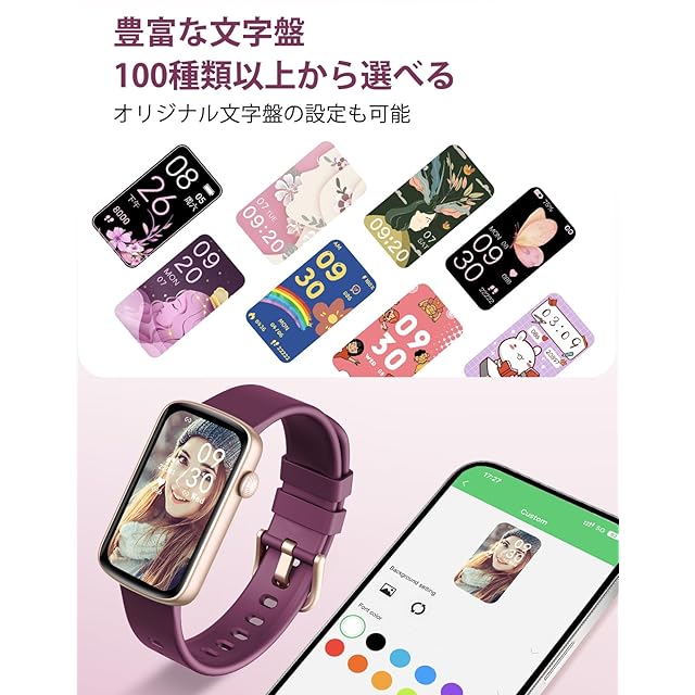 「100+文字盤·座りすぎ通知·生理周期」スマートウォッチ本体に5つの文字盤を搭載。専用アプリで100以上の文字盤をダウンロードできるだけでなく、アルバムや撮影により、お気に入りの写真を文字盤に設定することもでき、毎日気分に合わせたスタイルを楽しめます!専用アプリで座り過ぎのリマインダーの時間帯や間隔を自由に設定し、日常生活に無理なく取り入れられます。体を動かすタイミングを見逃しません。さらに、女性の生理周期を記録する機能では、アプリで生理周期の開始日と終了日を記録することで、次回の予想月経日や排卵日などを予測することができます。
