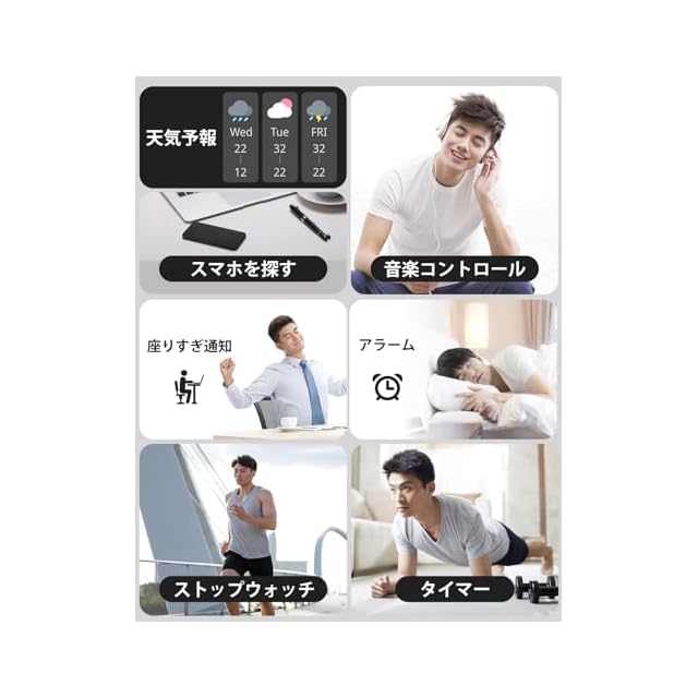 「着信通知機能付き」着信通知機能をサポートしています。電話がかかってきた場合、名前を確認することができ、必要に応じて電話を切断することができます(通話機能はありません)。また、Line、Facebook、Messager、Twitter、Whatsapp、Skype、Linkedin、Instagram、Viber、Gmailなど、多彩なメッセージアプリの通知をサポートしています。手元のスマートウォッチで通知を確認することで、いつでも大切な情報を手軽に確認できます。例えば、会議中や授業中、スマートフォンを取り出すことができなくても、手元のスマートウォッチでメッセージ通知を確認することができます。