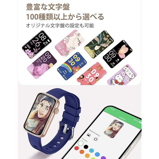 「100+文字盤·座りすぎ通知·生理周期」スマートウォッチ本体に5つの文字盤を搭載。専用アプリで100以上の文字盤をダウンロードできるだけでなく、アルバムや撮影により、お気に入りの写真を文字盤に設定することもでき、毎日気分に合わせたスタイルを楽しめます!専用アプリで座り過ぎのリマインダーの時間帯や間隔を自由に設定し、日常生活に無理なく取り入れられます。体を動かすタイミングを見逃しません。さらに、女性の生理周期を記録する機能では、アプリで生理周期の開始日と終了日を記録することで、次回の予想月経日や排卵日などを予測することができます。