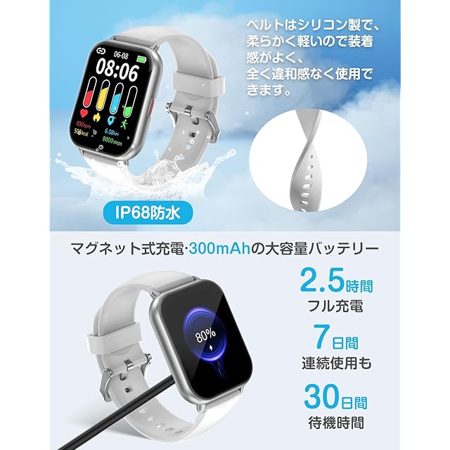 【IP68防水・適応デバイス】 IP68規格の防水・防塵性能を持ち、日常生活での手洗いや洗顔の際に取り外す必要がありません。注意:ダイビングや海水浴、サウナでの使用は避けてください。スマートウォッチは、iOS 9.0、Android 5.0、Bluetooth 4.0以上に対応しています。