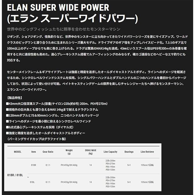 商品名:《新品未開封》テイルウォーク (Tailwalk) ベイトリール ELAN SUPER WIDEPOWER (エラン スーパーワイドパワー) 81BL