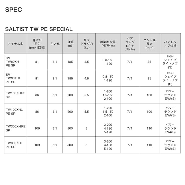 【ベアリング(ボール/ベアリング)】:7/1【標準糸巻量PE(号-m)】:1-200/1.5-150/2-100