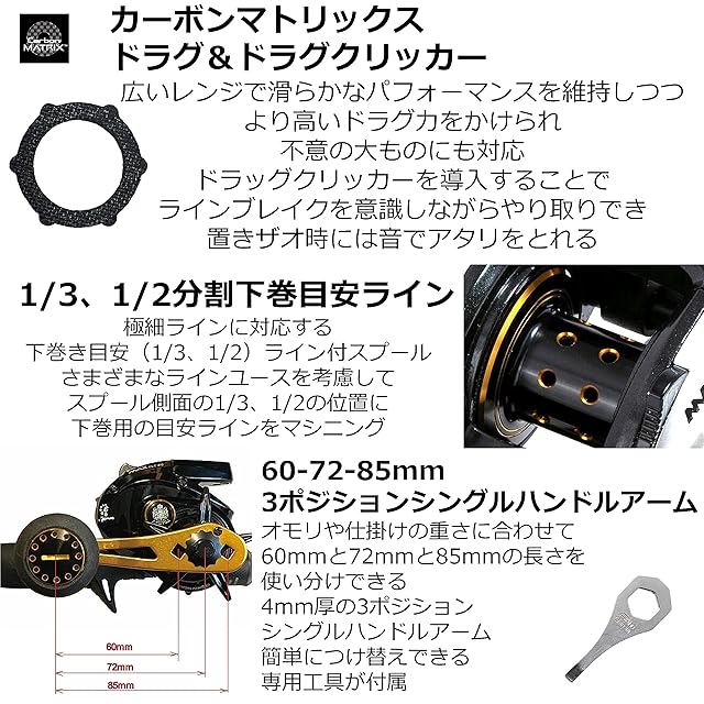 右ハンドル仕様 / 自重:358g / ギア比4.8:1