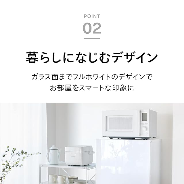 【フルホワイトのスマートデザイン】本体だけでなくパーツも白で統一し、生活空間におけるノイズを極力減らしたシンプルデザインを目指しました。家具・家電とも調和しやすく、お部屋をすっきりとした印象に仕上げます。