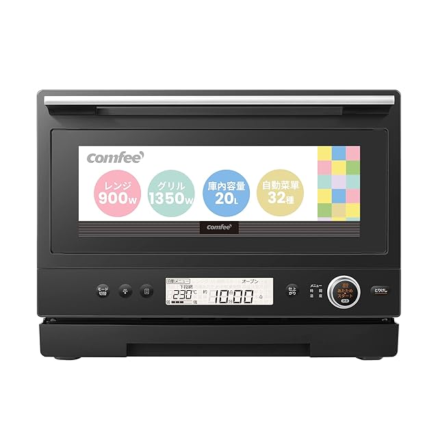 【商品仕様】COMFEE' オーブンレンジ:◇機能:オープン・レンジ・グリル・予熱・発酵機能、温度センサー・湿度センサー・チャイルドロック付き◇コンパクトなサイズ:37.9D x 44W x 32.6H cm、約15.3Kg ◇容量:20L ◇電源:AC100V、ヘルツフリー ◇最大出力:レンジ~900W、オーブン~100-230℃/35・40℃(発酵) ◇タイマー:最大90分◇オートメニュー数:32種類 ◇付属品:日本語取扱説明書※ 製品期間:一年間