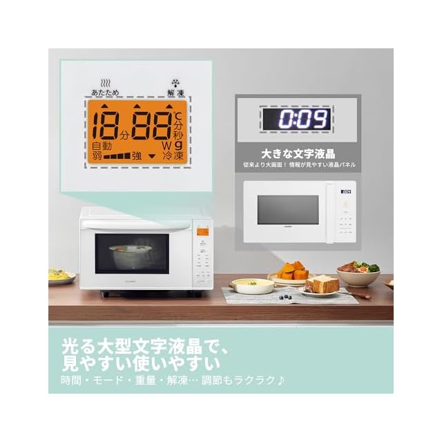 【17L広い庫内】この電子レンジは、17L広い庫内スペースがあり、幅29㎝まで大きなサイズの弁当や冷凍ピザもラクにあたためることができ、忙しい日々の中でも手軽に食事を準備することができます。