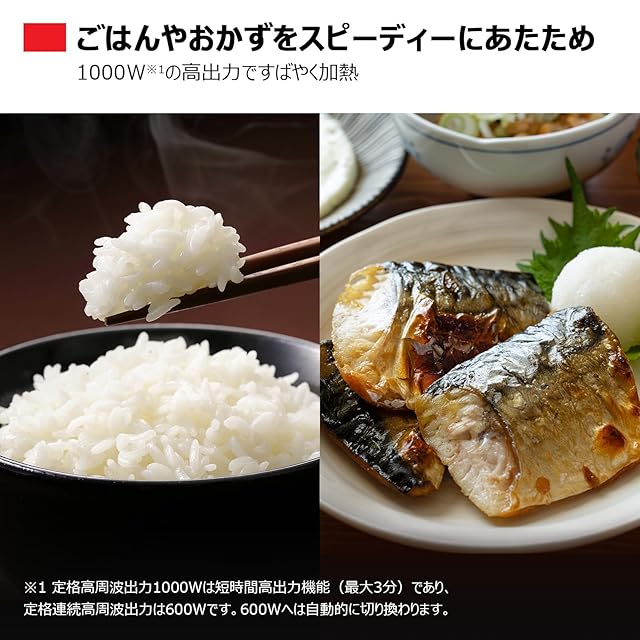 【1000W高出力&時短加熱】東芝オーブンレンジは1000Wハイパワーで、ご飯1杯を約60秒でスピード加熱!インバーター技術搭載でムラなく均一加熱。忙しい朝でも、あっという間に温かい朝食が準備できます。(5段階調節可能:1000W/600W/500W/200W/100W)