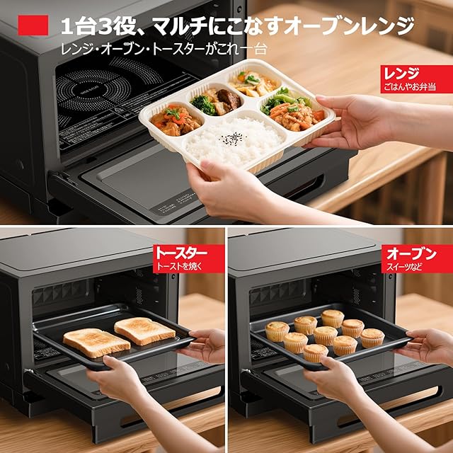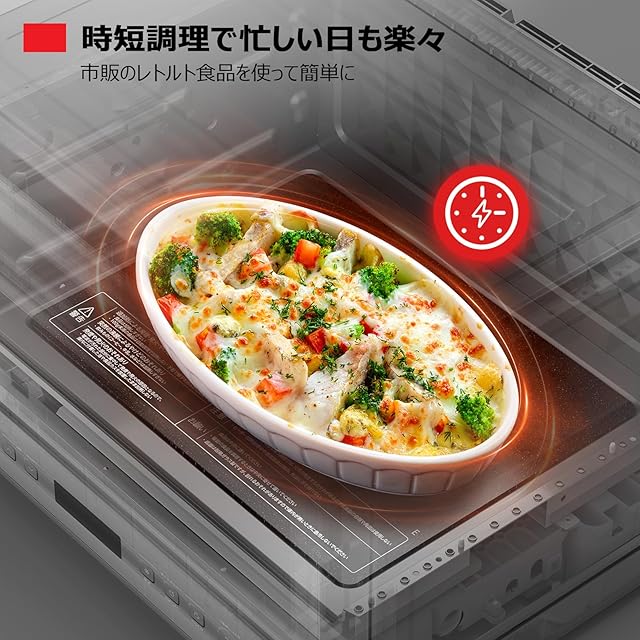 【30種オートメニュー&簡単操作】レンジからオーブンまで、30種類の自動メニューを搭載。毎日のあたためを、ワンタッチでおまかせ(常温・冷蔵のみ)。ボタン式操作パネルは直感的で、オーブンレンジ初心者でも迷いません。一人暮らしの方にもぴったりの使いやすさです。