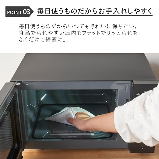 【庫内がフラットだから出し入れもお手入れも楽々】フラットタイプ×幅 約32㎝の庫内は大きなお皿やお弁当の出し入れにも便利。ターンテーブルがないので、庫内でお弁当がぶつかる心配もありません。お手入れもさっと拭くだけで楽々です。