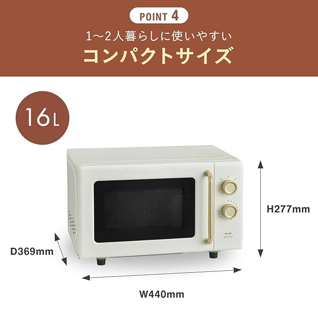 《新品未開封》BRUNO ブルーノ 電子レンジ 一人暮らし 単機能 16L フラットテーブル 全国対応 ヘルツフリー カンタン操作 アイボリー BOE150-IV