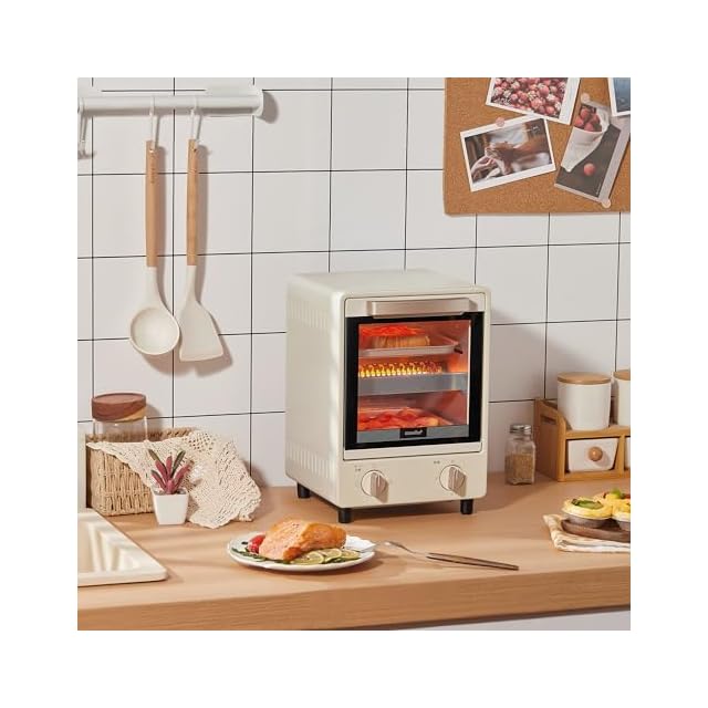 【スリムなレトロ式】このオーブントースターの幅25.8×奥行23.2×高さ33.3㎝、重量3kgは、縦型の小型デザインで場所を取りません。また、杏色のレトロな外観デザインは柔らかく、どんなスタイルのキッチンにも完璧に溶け込み、若者に最適です。美味しい料理を作るだけでなく、キッチンの美しい景色にもなります。